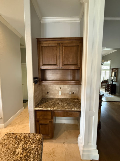 We cannot get over this contemporary classic! This customer desired lighter and brighter with more storage. Some of this project's highlights include completely custom white oak cabinets, a buffet addition, wine rack, appliance garage, and mood lighting, stunning zellige tile, and other cosmetic upgrades to make this kitchen feel like a dream.